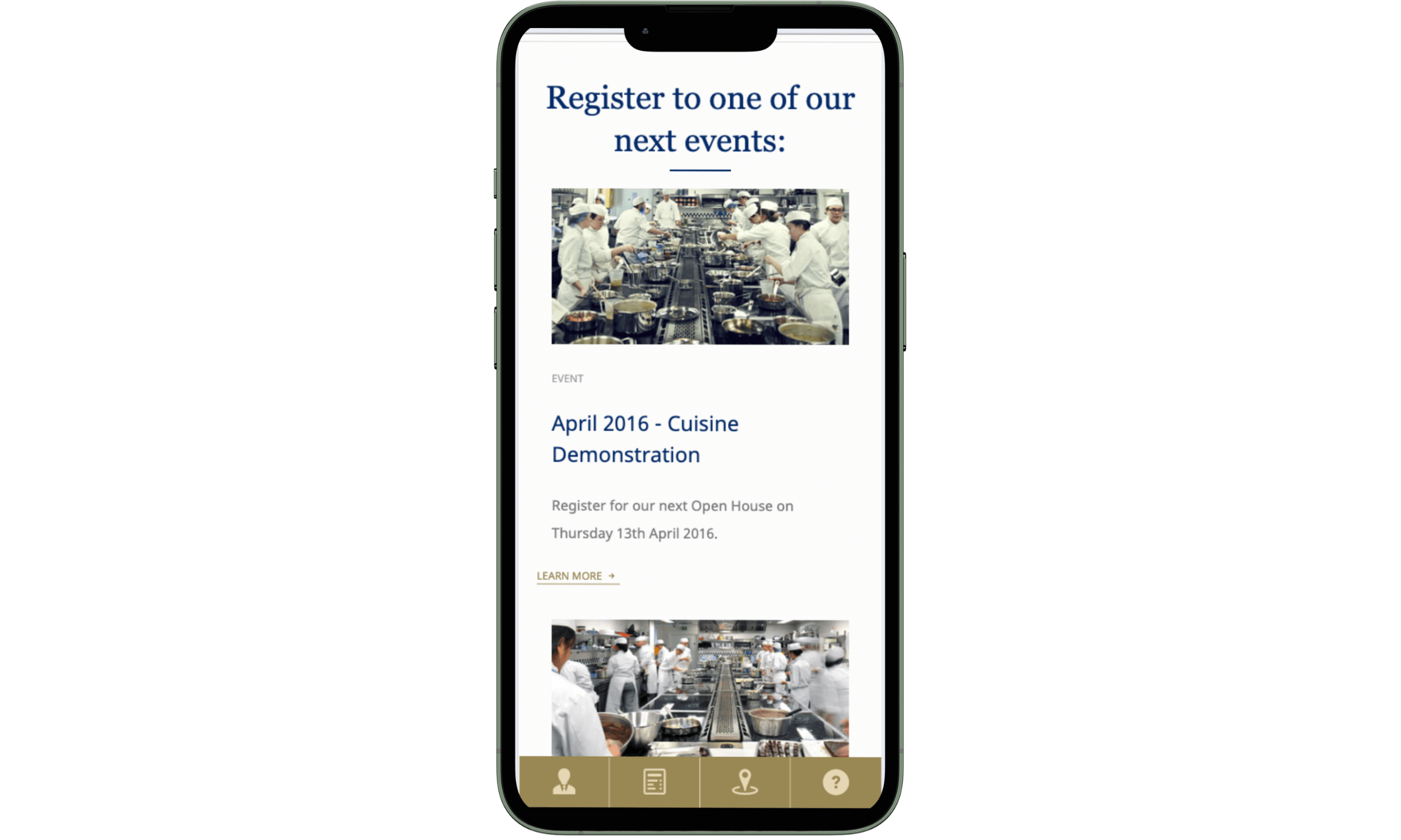 Unclear value proposition: previous course details and offerings lacked engaging visuals and clear value propositions. This made it difficult for visitors to fully grasp the benefits of Le Cordon Bleu's programmes.